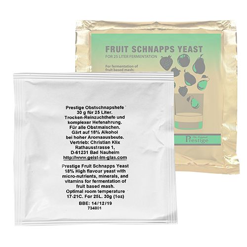 Wil je fruit vergisten met een hoge alcoholopbrengst? Deze speciaal ontwikkelde Fruit & Schnapps Gist is ideaal voor het maken van krachtige distillaten uit fruitpulp, met een potentieel alcoholpercentage tot wel 18% – aanzienlijk hoger dan bij standaard wijngist.